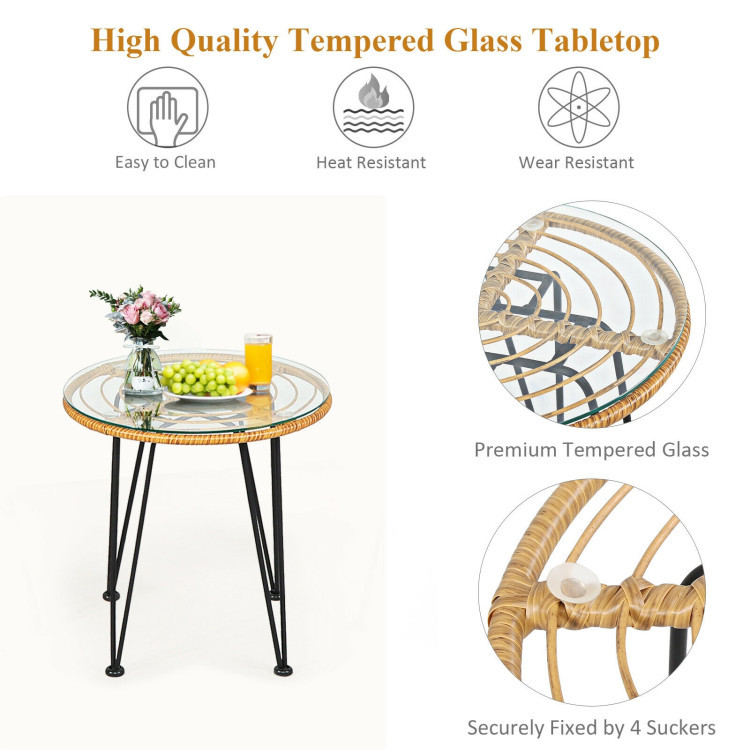 3 Pieces Rattan Furniture Set With Cushioned Chair Table
