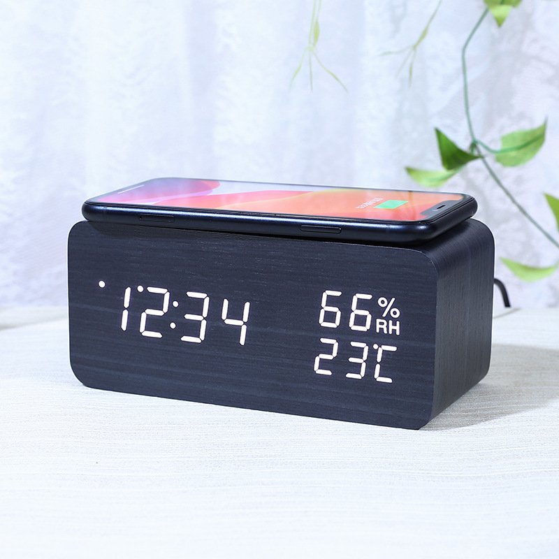 Smart Wireless Charging Wooden Alarm Clock Creative Wooden