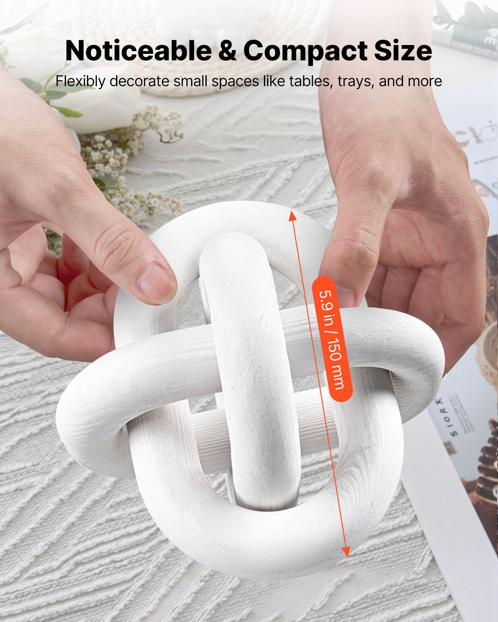 Wood Chain Link Decor, 3 Link, Hand Carved Wooden Knot Decor, Coffee Table Decoration Modern Shelf Accents, Decorative Objects For Home Living Room Bedroom Entryway Farmhouse Bookshelf, White