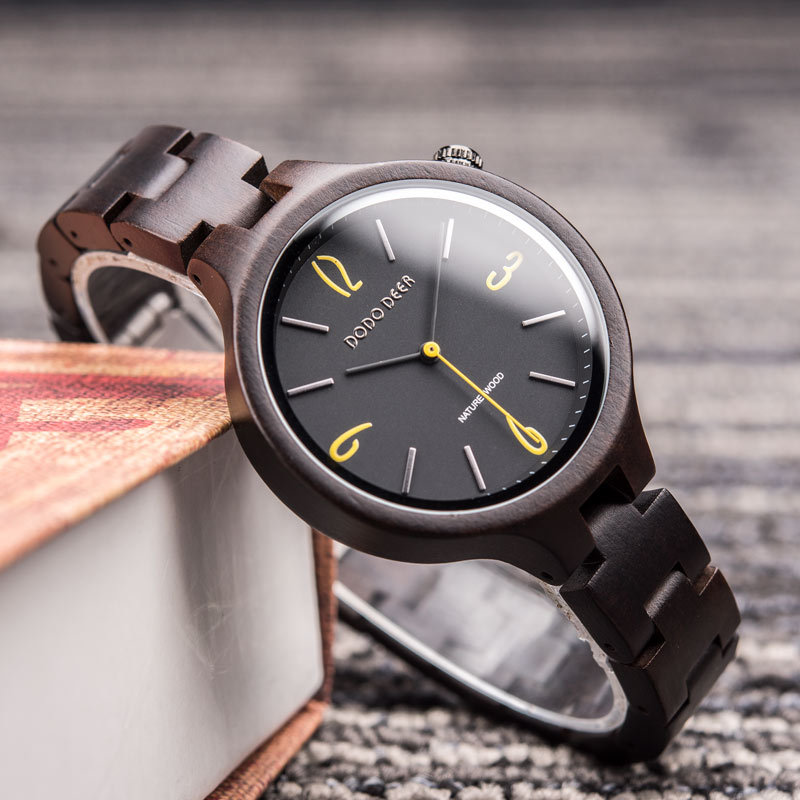 Wooden luminous quartz watch